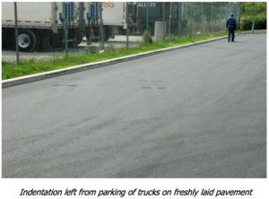 - Construction equipment allowed on a newly constructed asphalt pavement will leave indentations and scuff marks; and